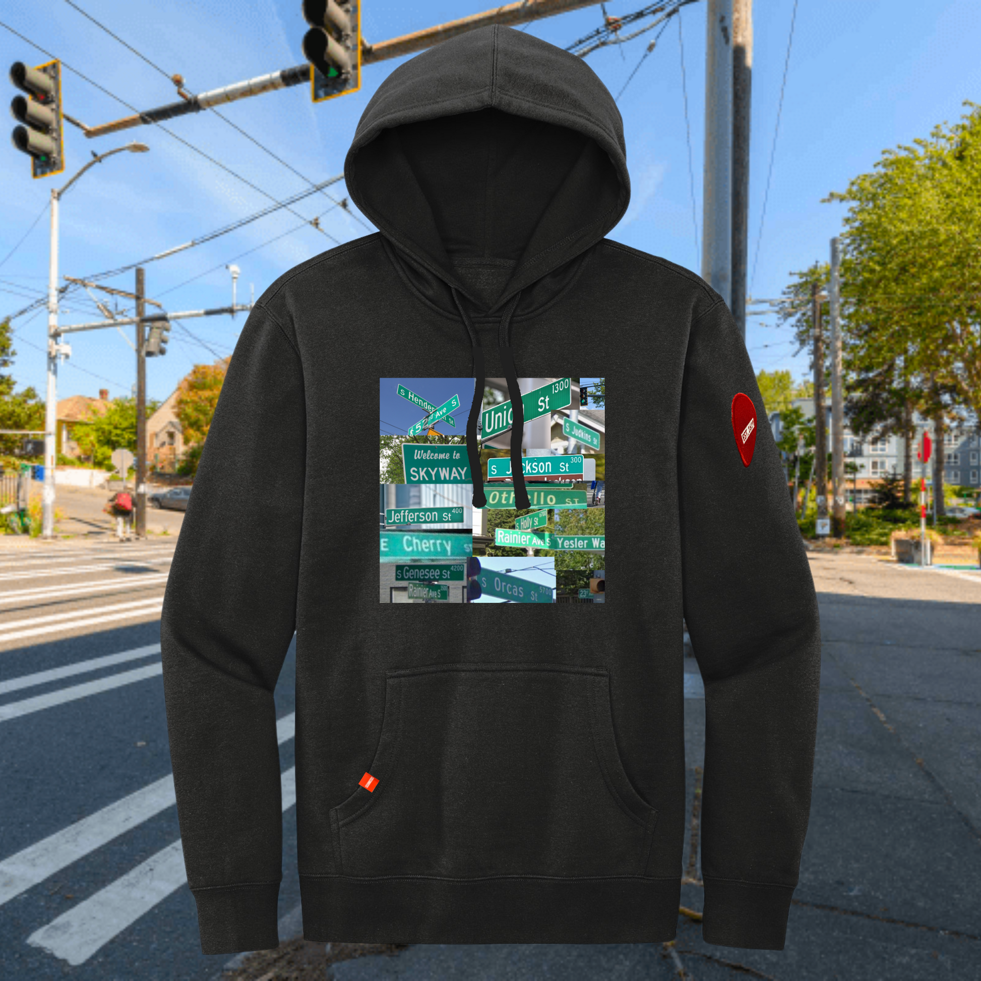 EST 1619 Presents: The #SeattleCity shirt. This PREMIUM HOODIE represents the infamous checkpoints (SkyWay, Henderson, Holly, Orcas, Othello, Jackson, Cherry, Yesler, Jefferson, Judkins & Genesee) along the much traveled #RainierAve and #23rd Ave.