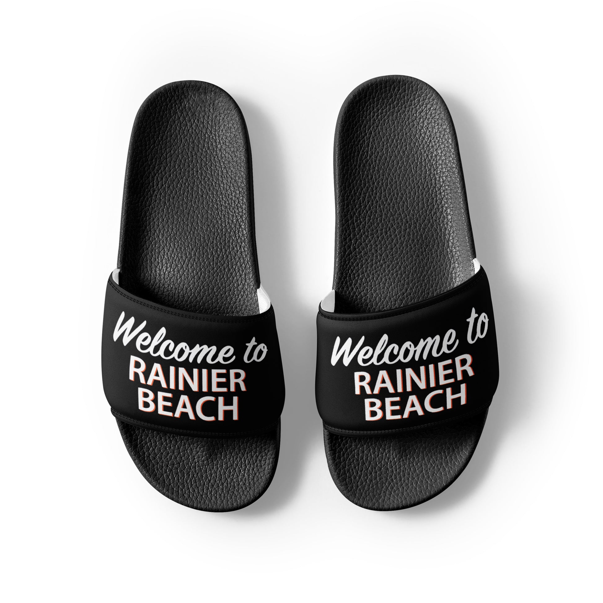 EST. 1619 Presents: What’s getting home without comfy, open-toed shoes? Get yourself these Welcome HOME! - RAINIER BEACH slides as an addition to your comfy leisure wear . The cushioned upper strap and textured footbed make these slides an excellent choice for the chill activities.