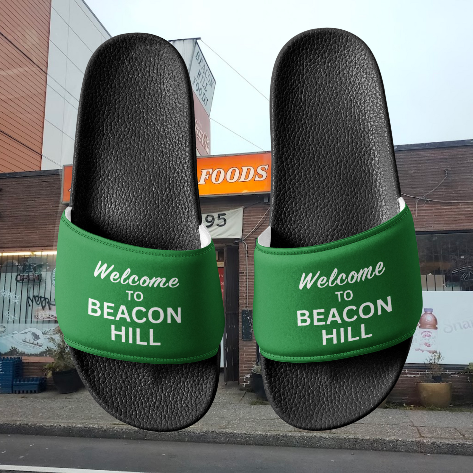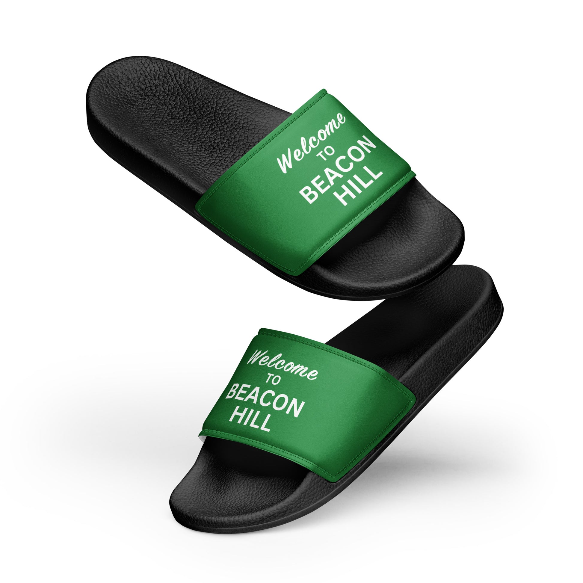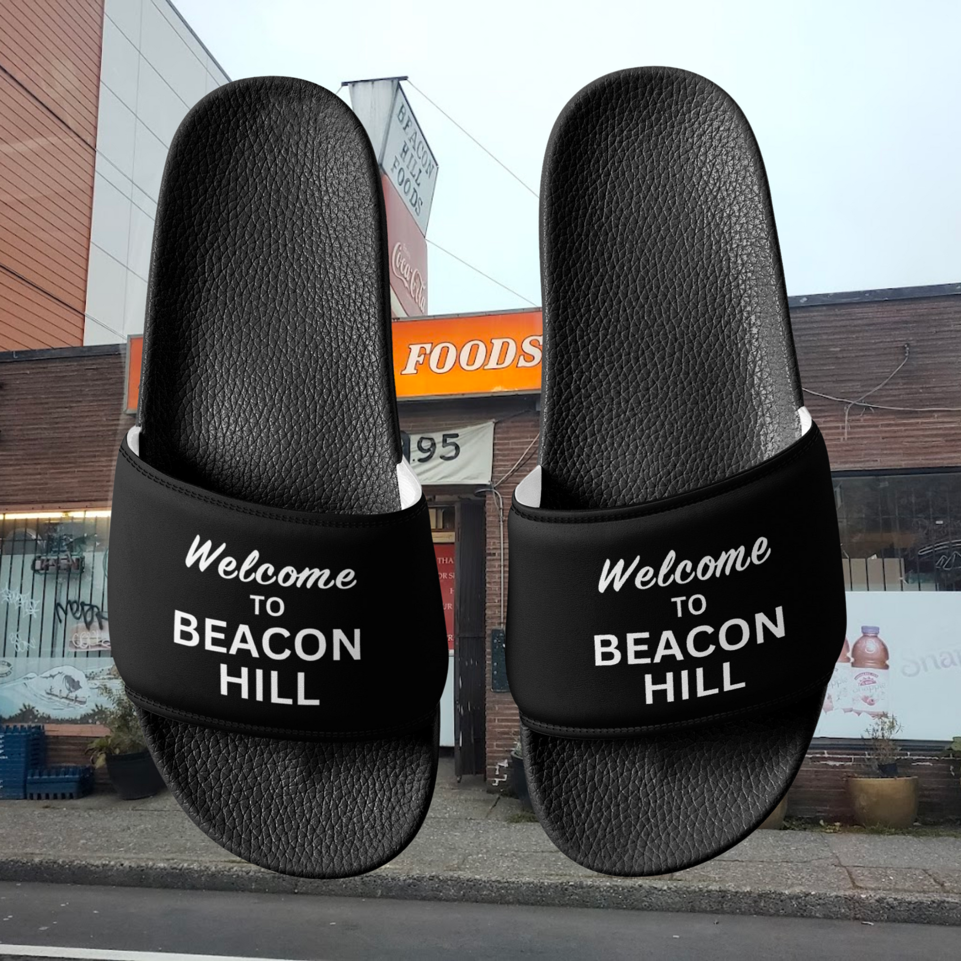 EST. 1619 Presents: What’s getting home without comfy, open-toed shoes? Get yourself these Welcome HOME! - BEACON HILL slides as an addition to your comfy leisure wear . The cushioned upper strap and textured footbed make these slides an excellent choice for the chill activities.