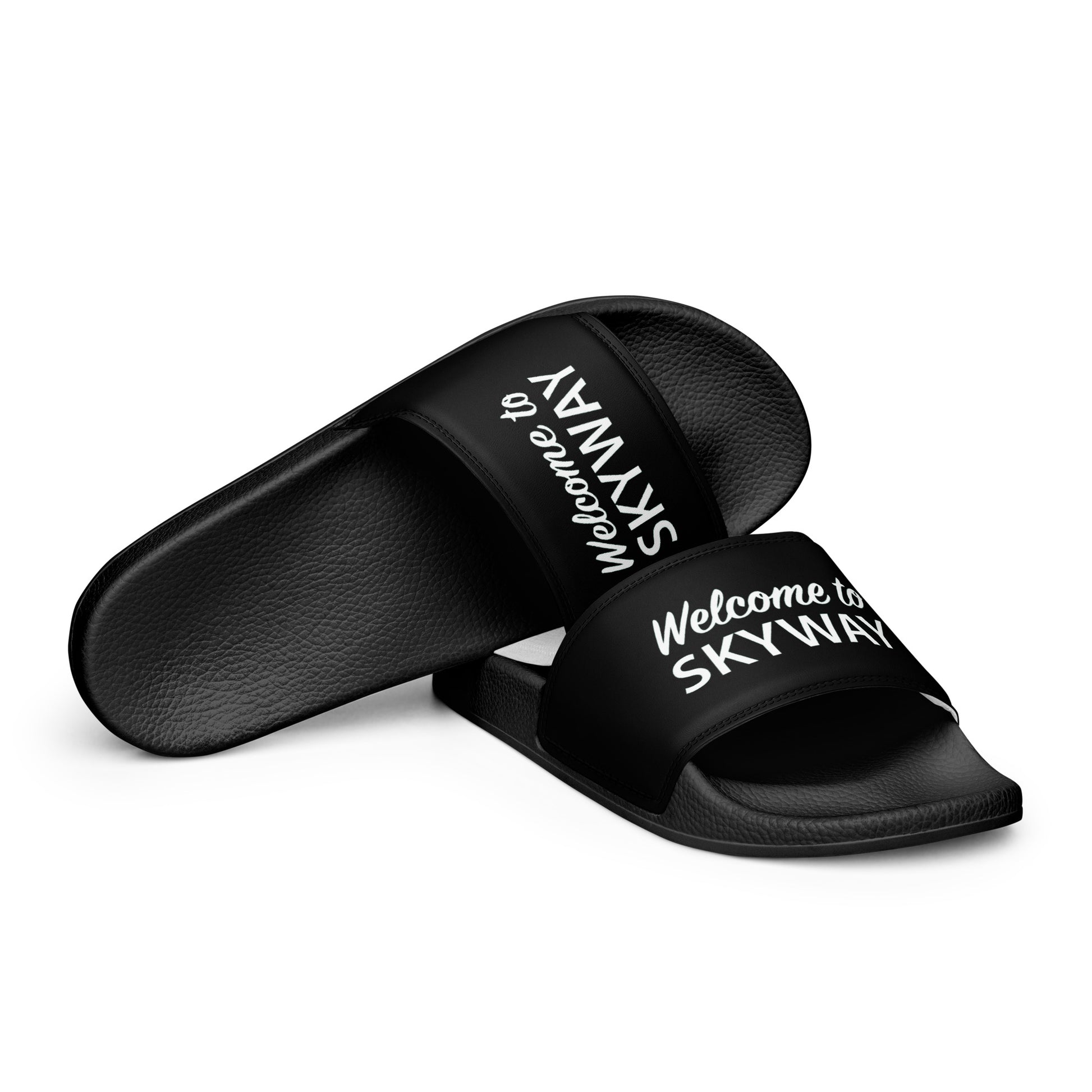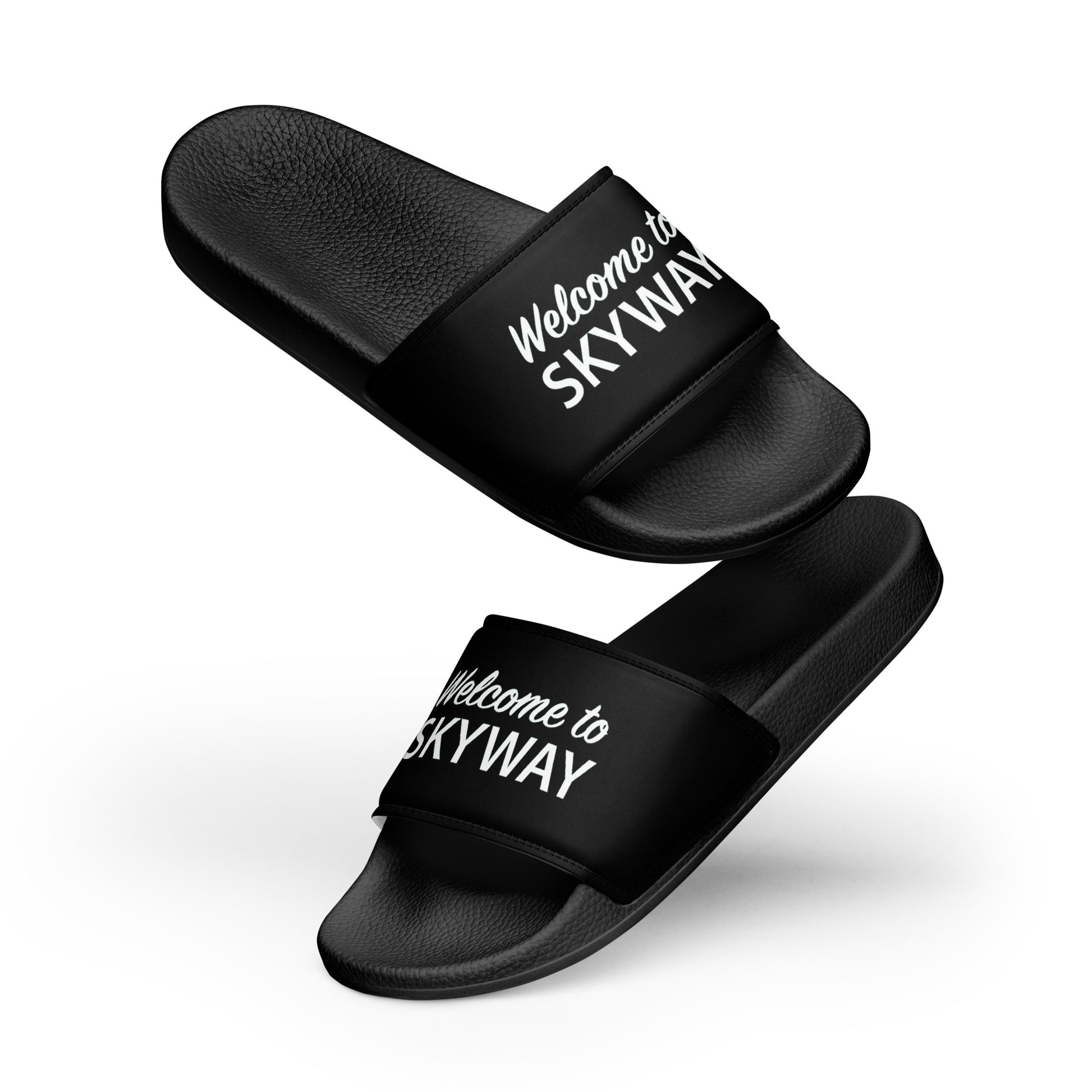 EST. 1619 Presents: What’s getting home without comfy, open-toed shoes? Get yourself these Welcome HOME! - SKYWAY slides as an addition to your comfy leisure wear . The cushioned upper strap and textured footbed make these slides an excellent choice for the chill activities.